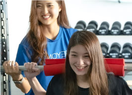きついイメージがあると思いますが、当店のトレーニングは、もっとやりたくなる、誰でも気軽に楽しく取り組めるプログラムを重視しております。 また、あなたの身体に合わせてカスタマイズしていくので、身体に無理な負担はかからないよう調節いたします。ご安心ください。