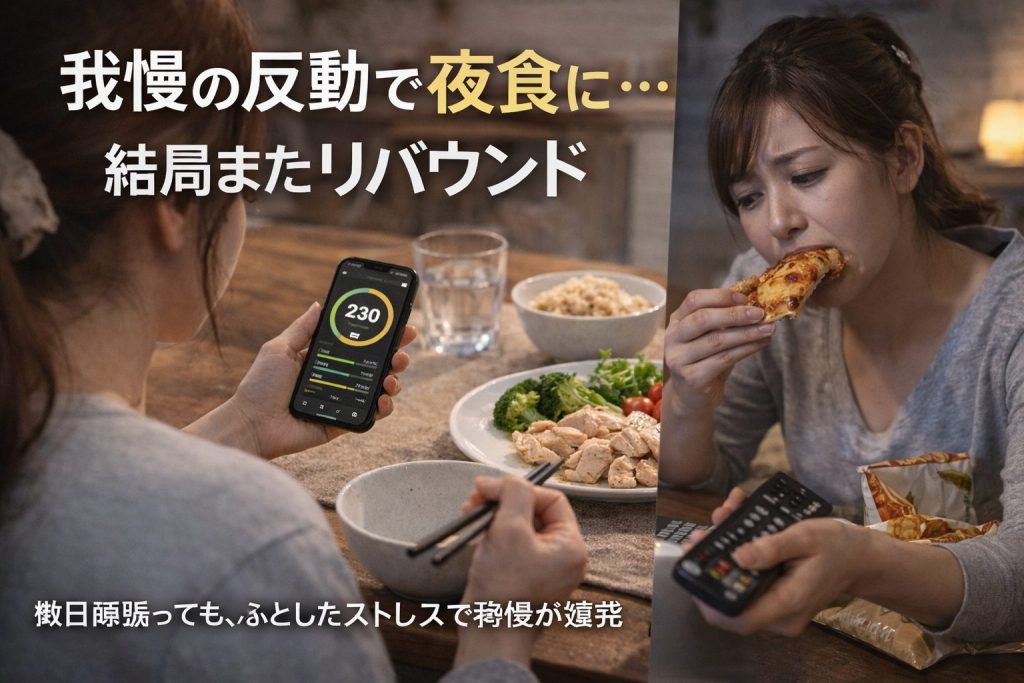 一方で、ここを極端に制限すると、ストレスや空腹が積み重なり、翌日の暴食につながりやすくなります。